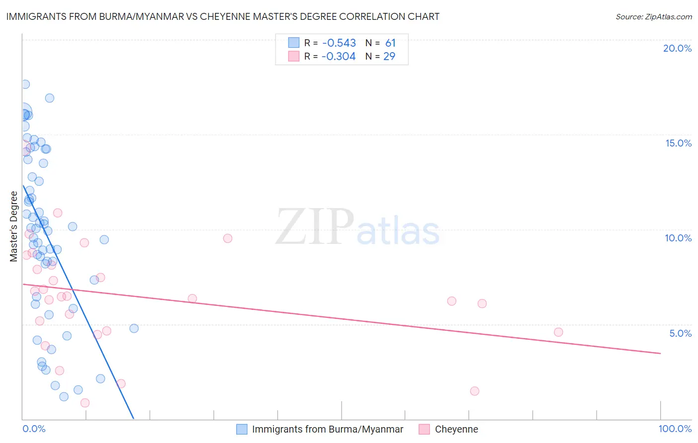 Immigrants from Burma/Myanmar vs Cheyenne Master's Degree Correlation Chart
