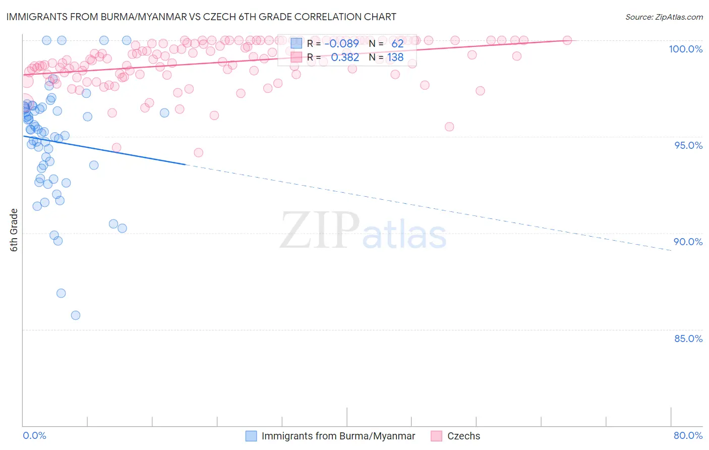 Immigrants from Burma/Myanmar vs Czech 6th Grade Correlation Chart