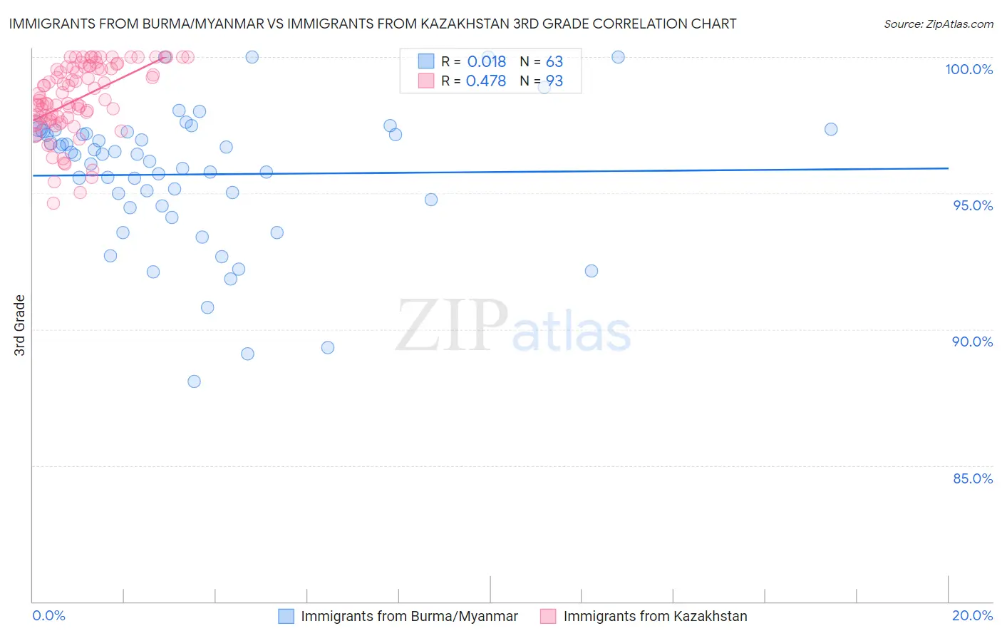 Immigrants from Burma/Myanmar vs Immigrants from Kazakhstan 3rd Grade Correlation Chart