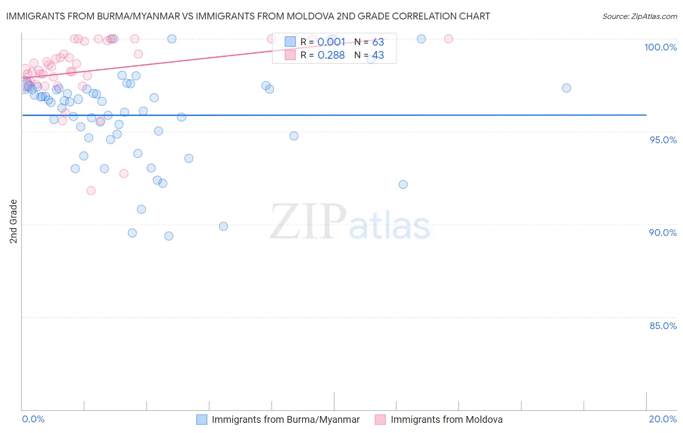 Immigrants from Burma/Myanmar vs Immigrants from Moldova 2nd Grade Correlation Chart