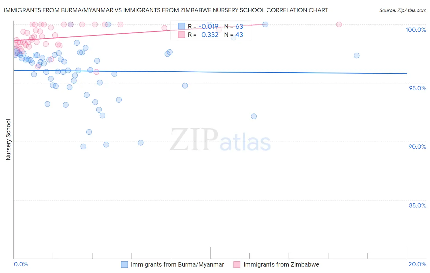 Immigrants from Burma/Myanmar vs Immigrants from Zimbabwe Nursery School Correlation Chart