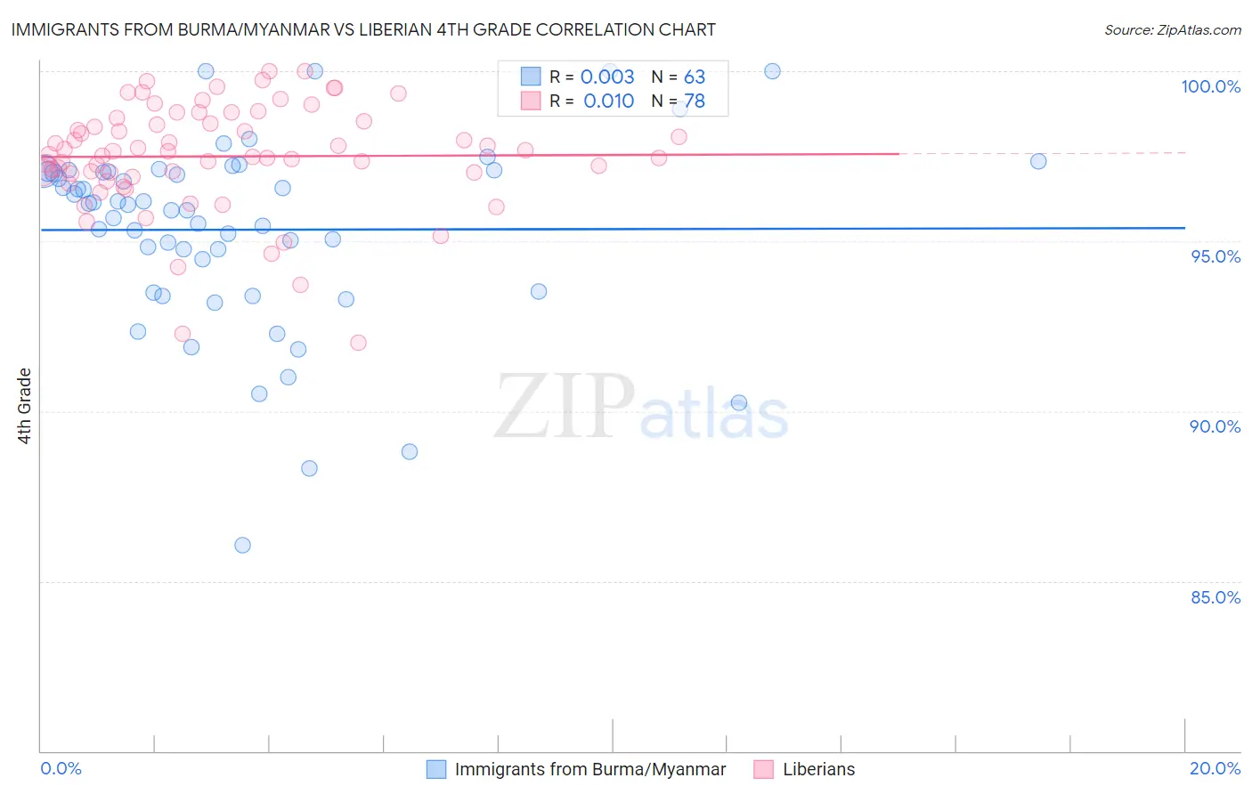 Immigrants from Burma/Myanmar vs Liberian 4th Grade Correlation Chart