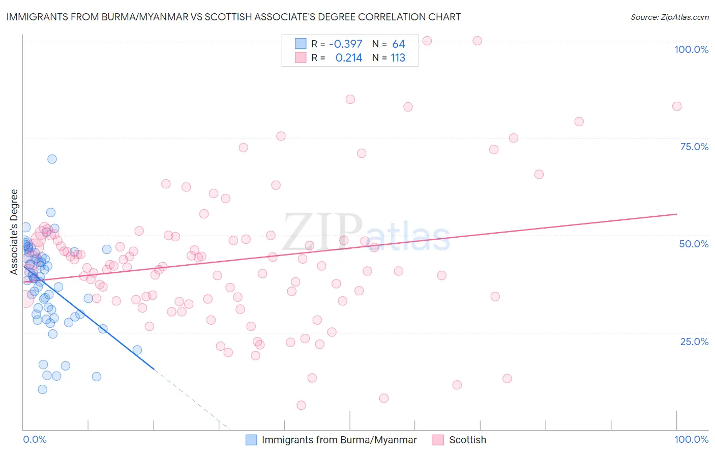 Immigrants from Burma/Myanmar vs Scottish Associate's Degree Correlation Chart