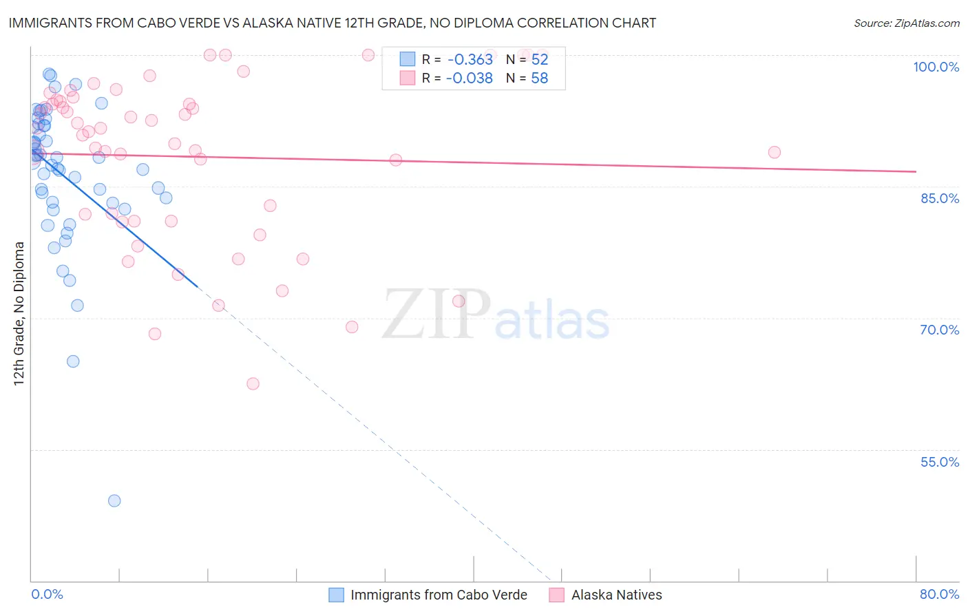 Immigrants from Cabo Verde vs Alaska Native 12th Grade, No Diploma Correlation Chart