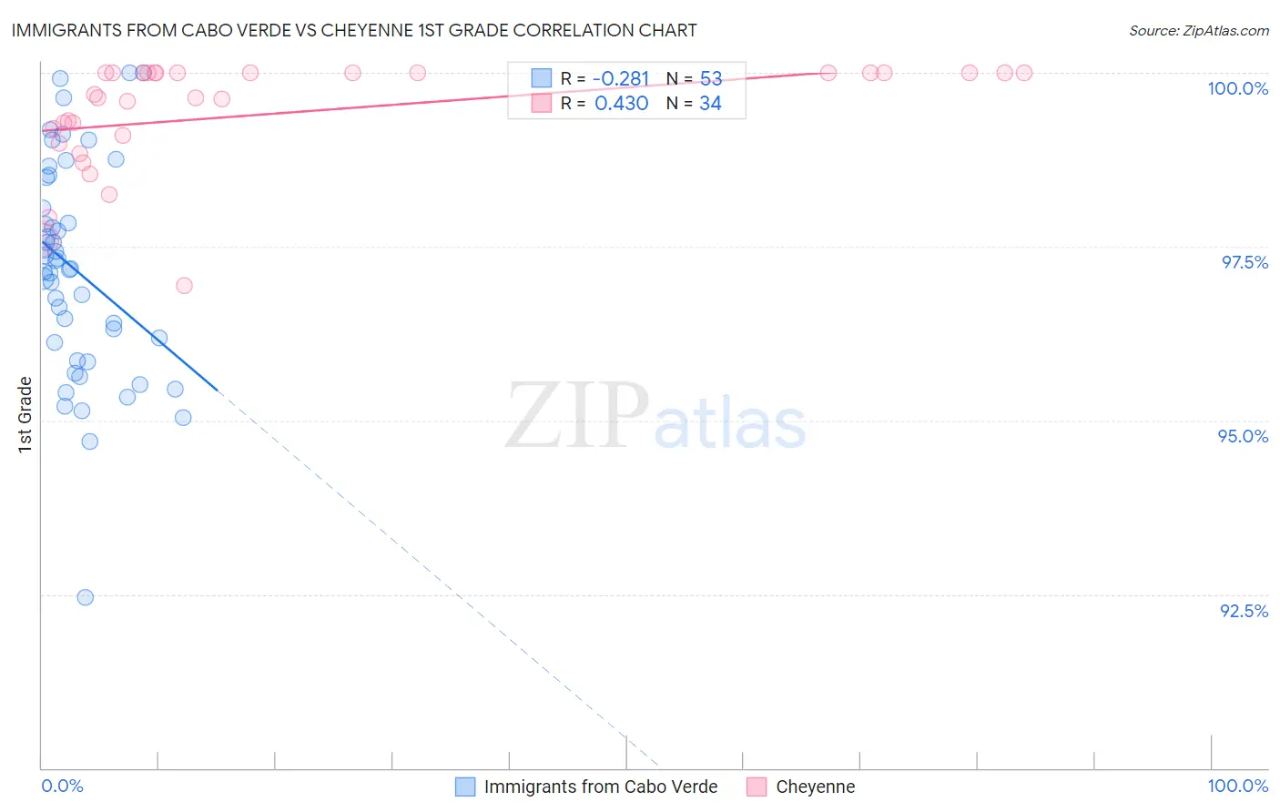 Immigrants from Cabo Verde vs Cheyenne 1st Grade Correlation Chart