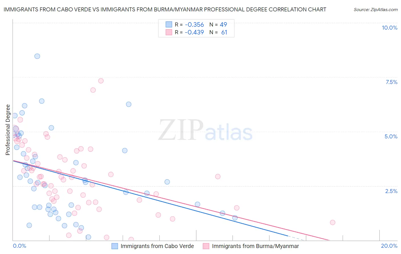 Immigrants from Cabo Verde vs Immigrants from Burma/Myanmar Professional Degree Correlation Chart