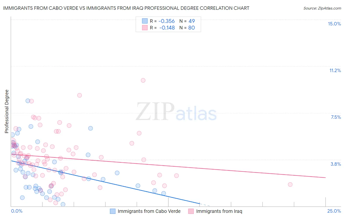 Immigrants from Cabo Verde vs Immigrants from Iraq Professional Degree Correlation Chart