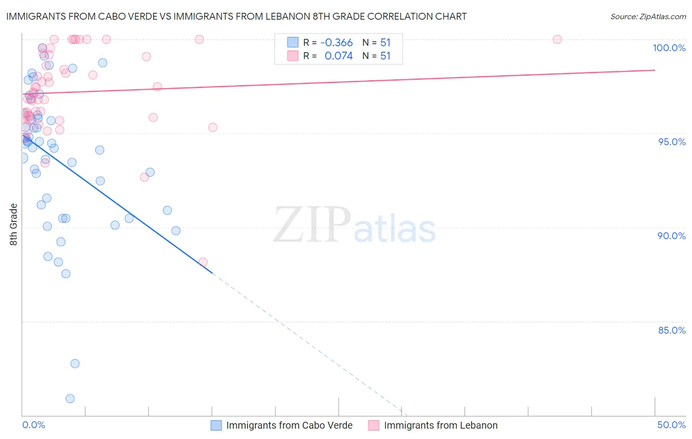 Immigrants from Cabo Verde vs Immigrants from Lebanon 8th Grade Correlation Chart