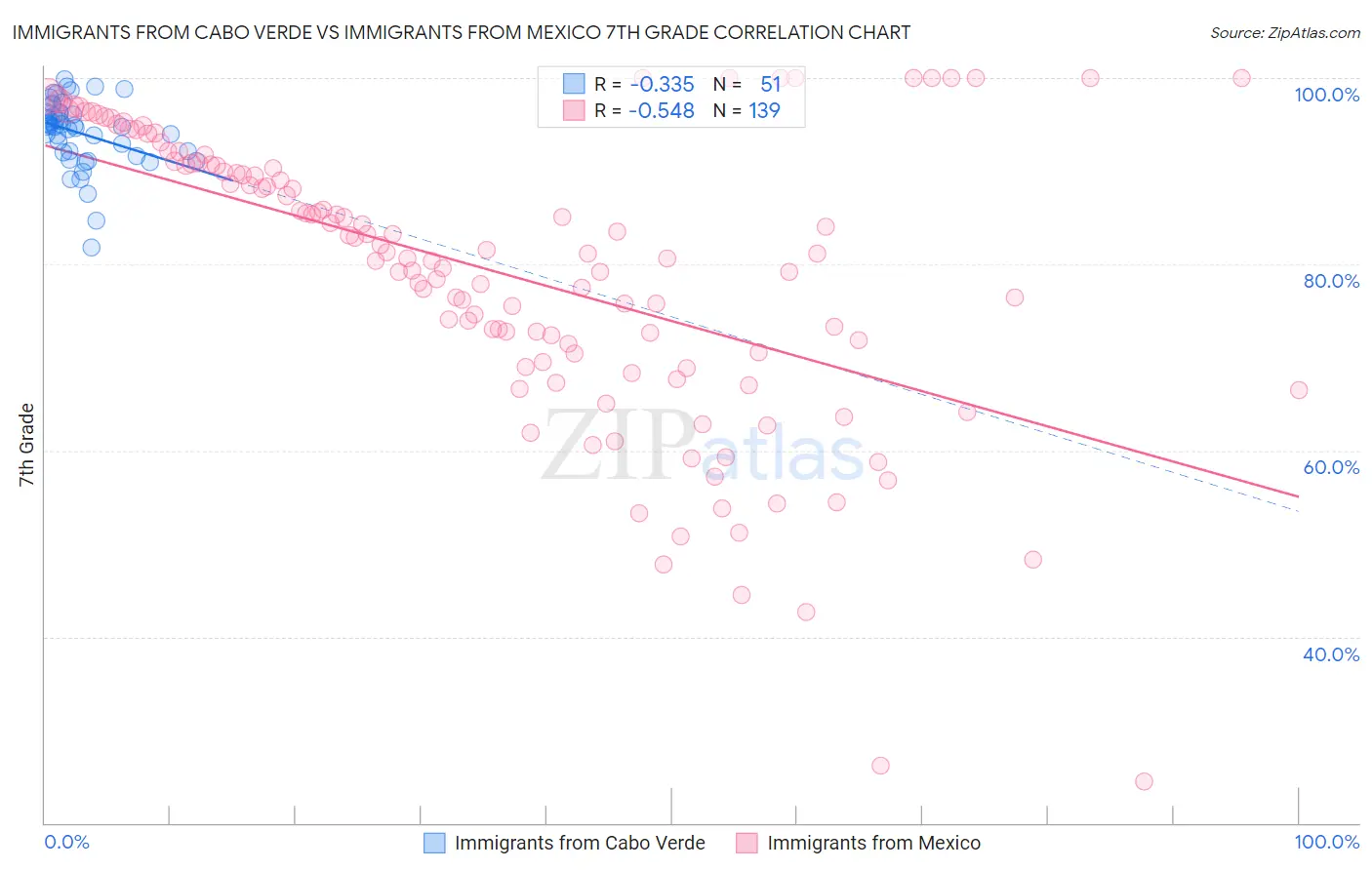Immigrants from Cabo Verde vs Immigrants from Mexico 7th Grade Correlation Chart