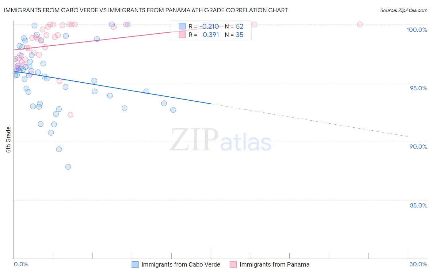 Immigrants from Cabo Verde vs Immigrants from Panama 6th Grade Correlation Chart