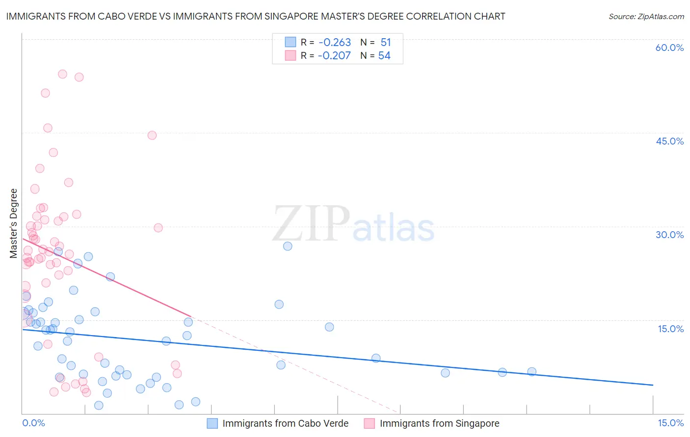 Immigrants from Cabo Verde vs Immigrants from Singapore Master's Degree Correlation Chart