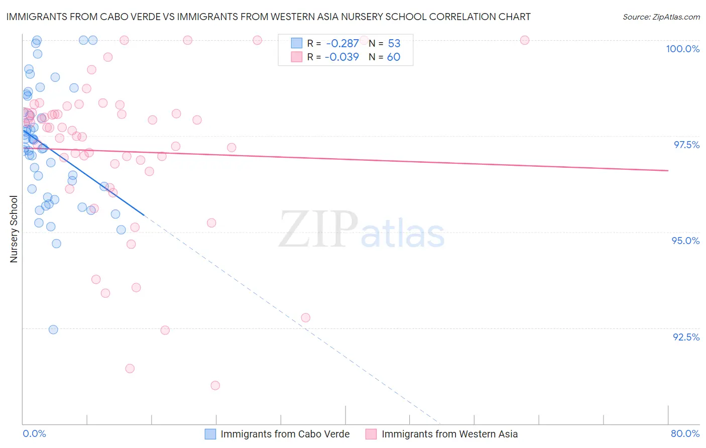 Immigrants from Cabo Verde vs Immigrants from Western Asia Nursery School Correlation Chart