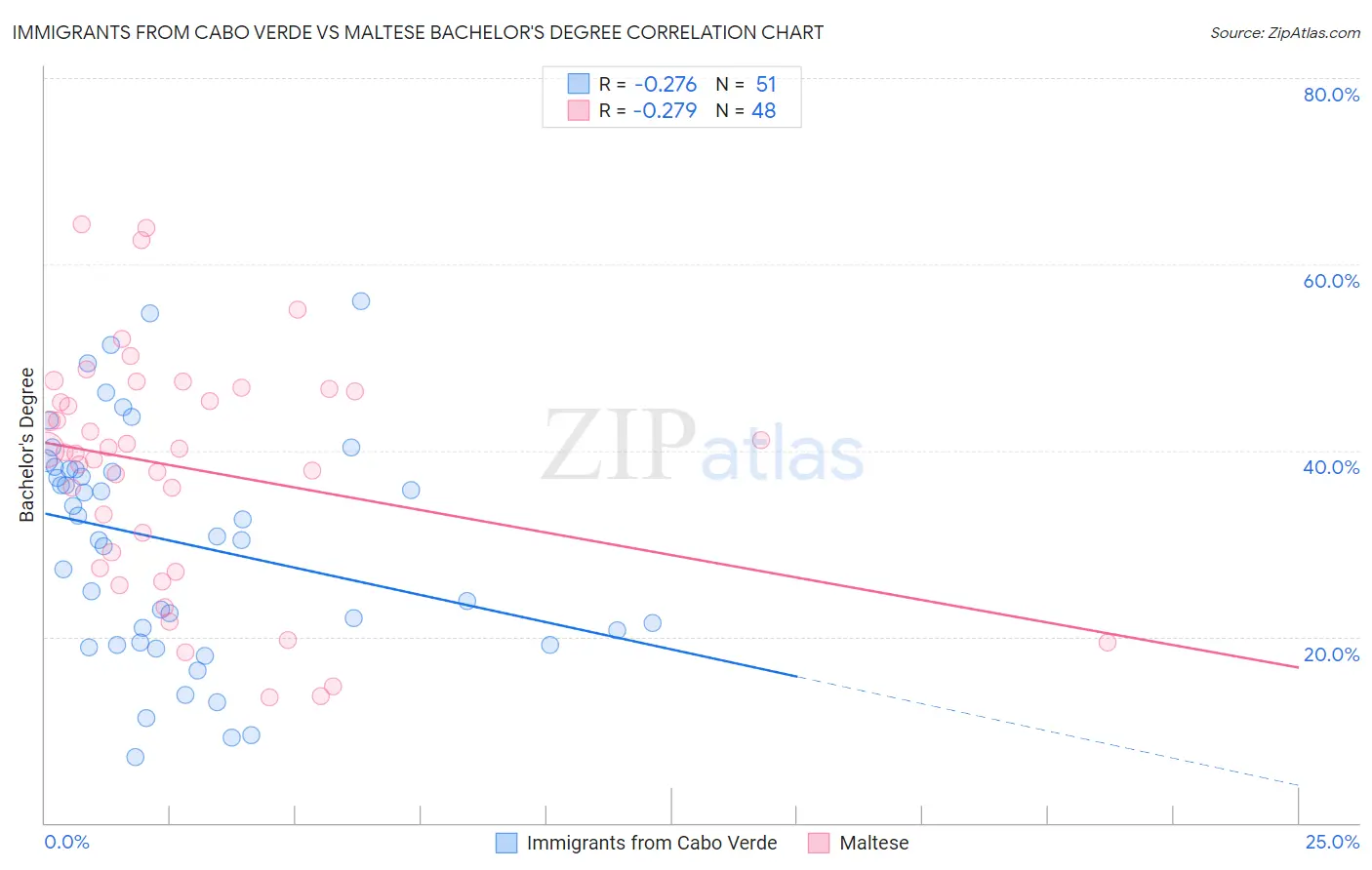 Immigrants from Cabo Verde vs Maltese Bachelor's Degree Correlation Chart