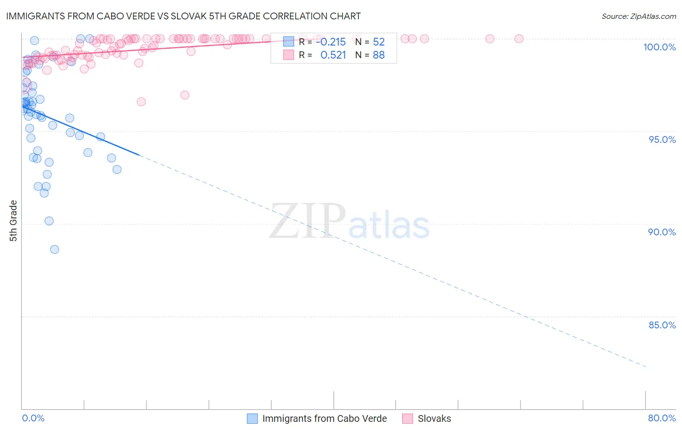 Immigrants from Cabo Verde vs Slovak 5th Grade Correlation Chart