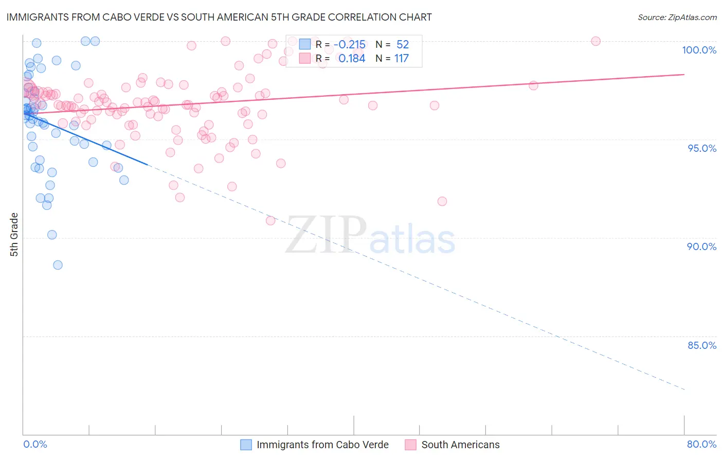Immigrants from Cabo Verde vs South American 5th Grade Correlation Chart