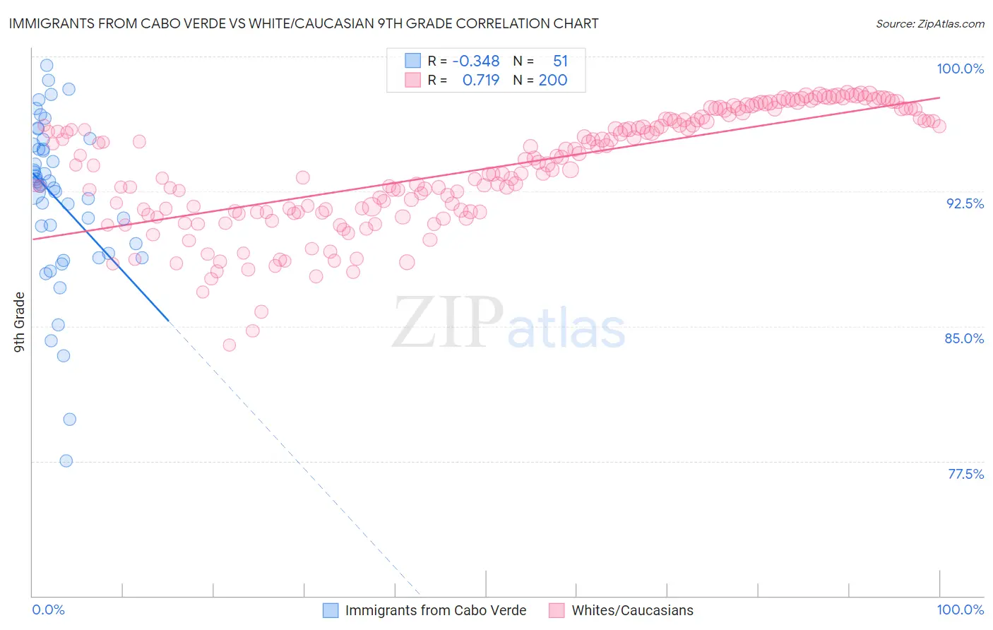 Immigrants from Cabo Verde vs White/Caucasian 9th Grade Correlation Chart
