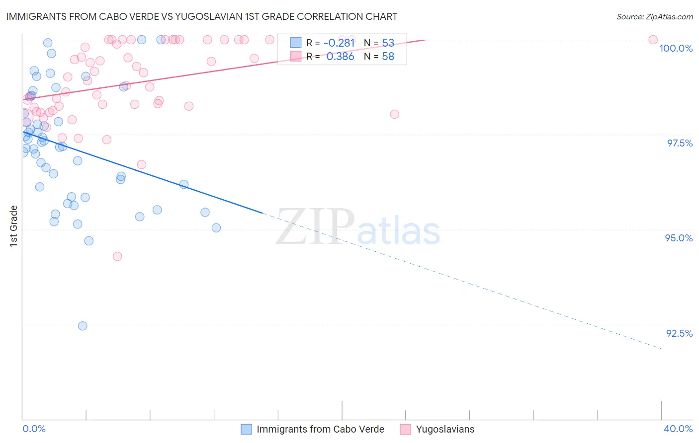 Immigrants from Cabo Verde vs Yugoslavian 1st Grade Correlation Chart