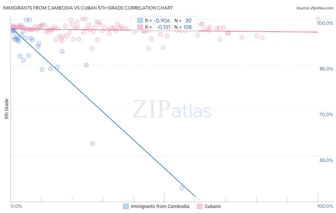 Immigrants from Cambodia vs Cuban 5th Grade Correlation Chart
