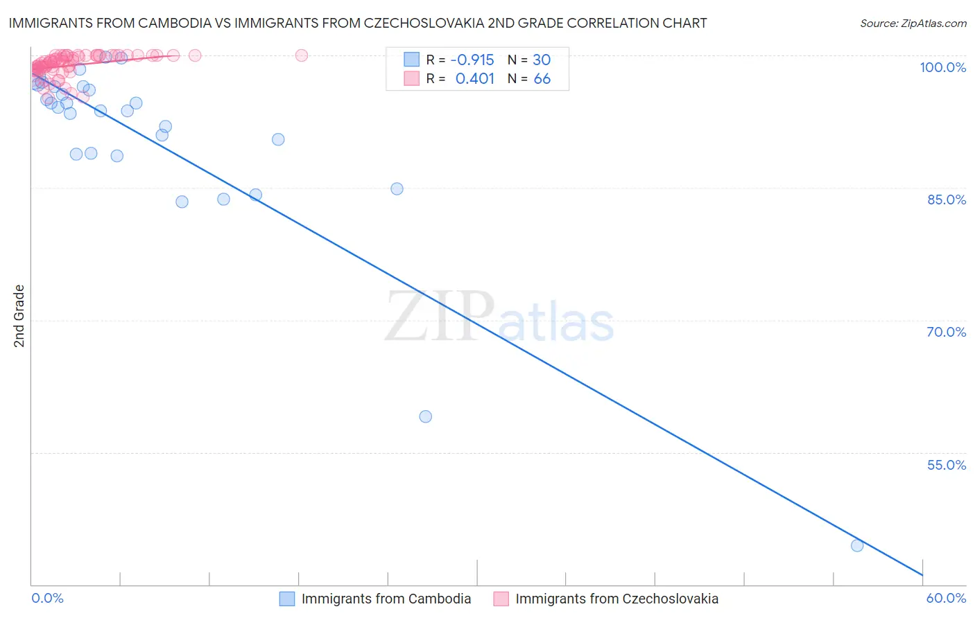 Immigrants from Cambodia vs Immigrants from Czechoslovakia 2nd Grade Correlation Chart