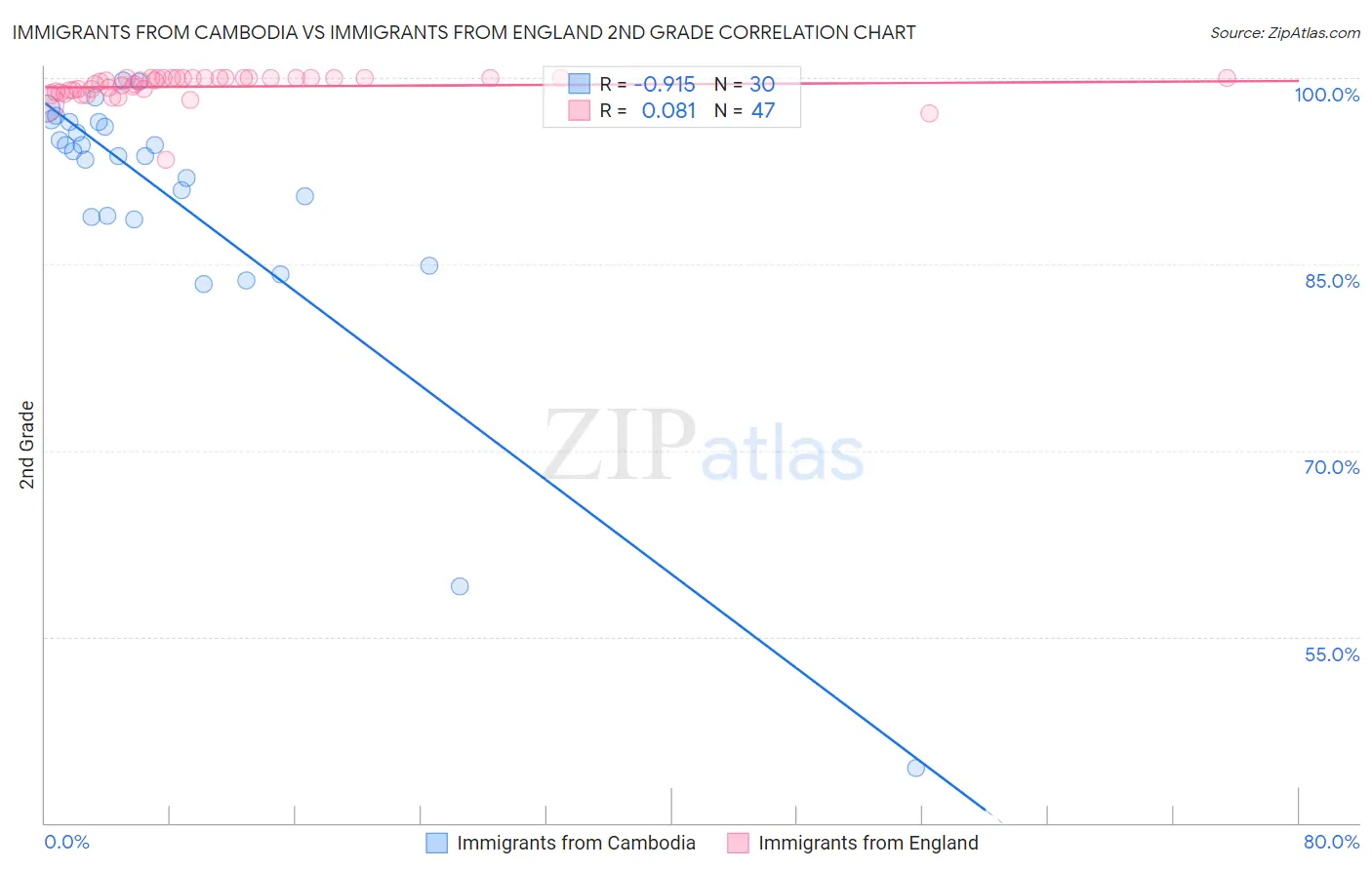 Immigrants from Cambodia vs Immigrants from England 2nd Grade Correlation Chart