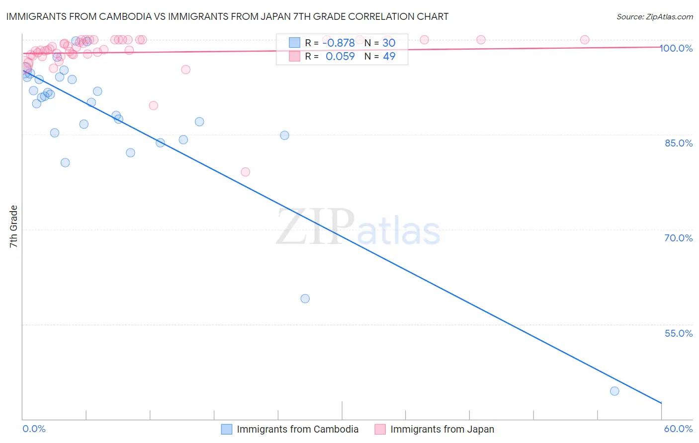 Immigrants from Cambodia vs Immigrants from Japan 7th Grade Correlation Chart