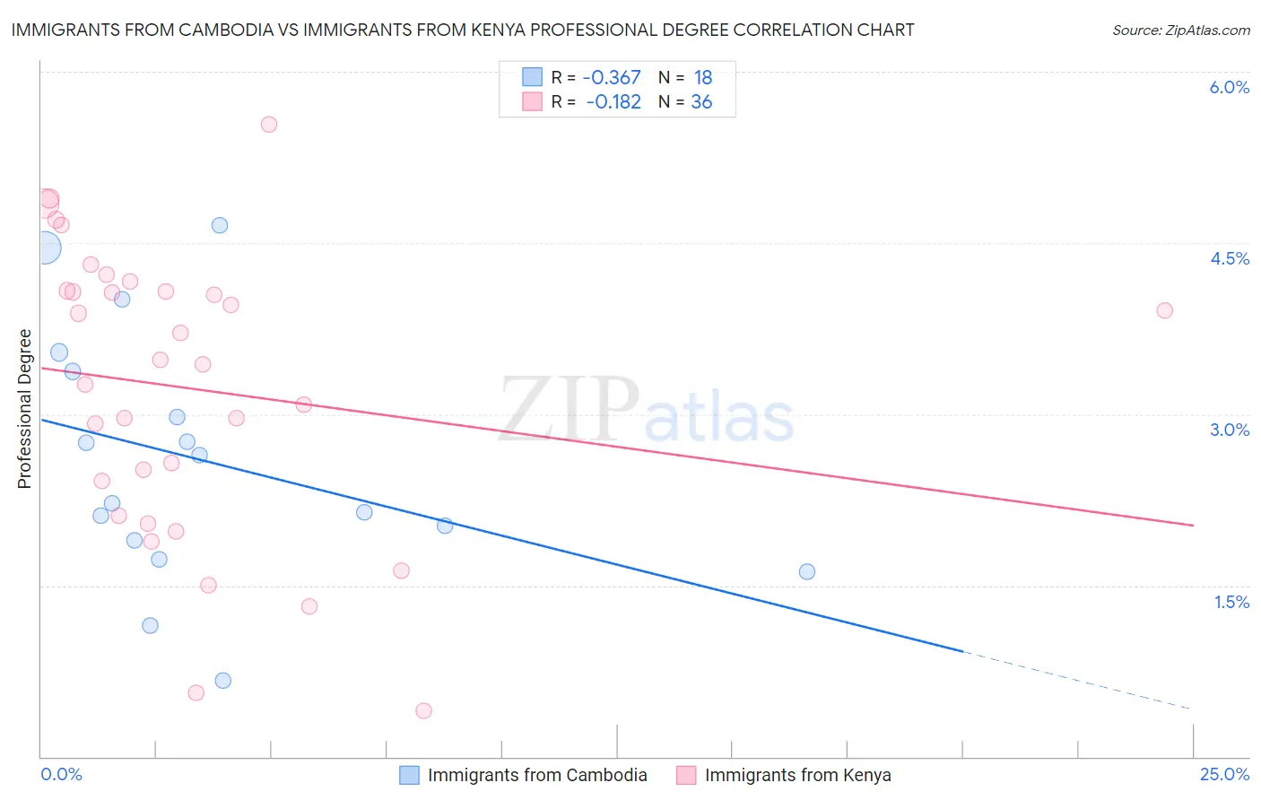 Immigrants from Cambodia vs Immigrants from Kenya Professional Degree