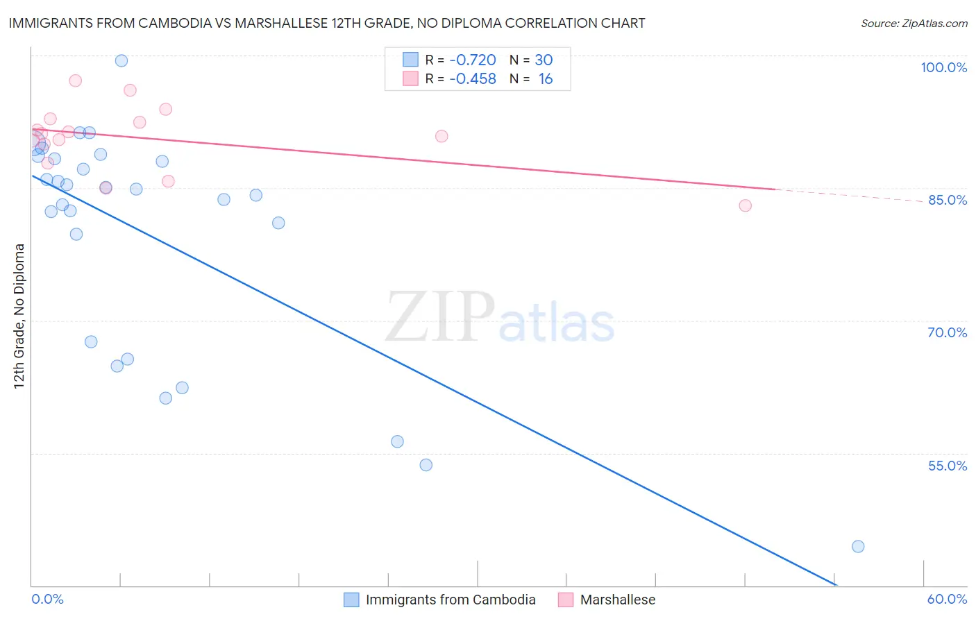 Immigrants from Cambodia vs Marshallese 12th Grade, No Diploma Correlation Chart