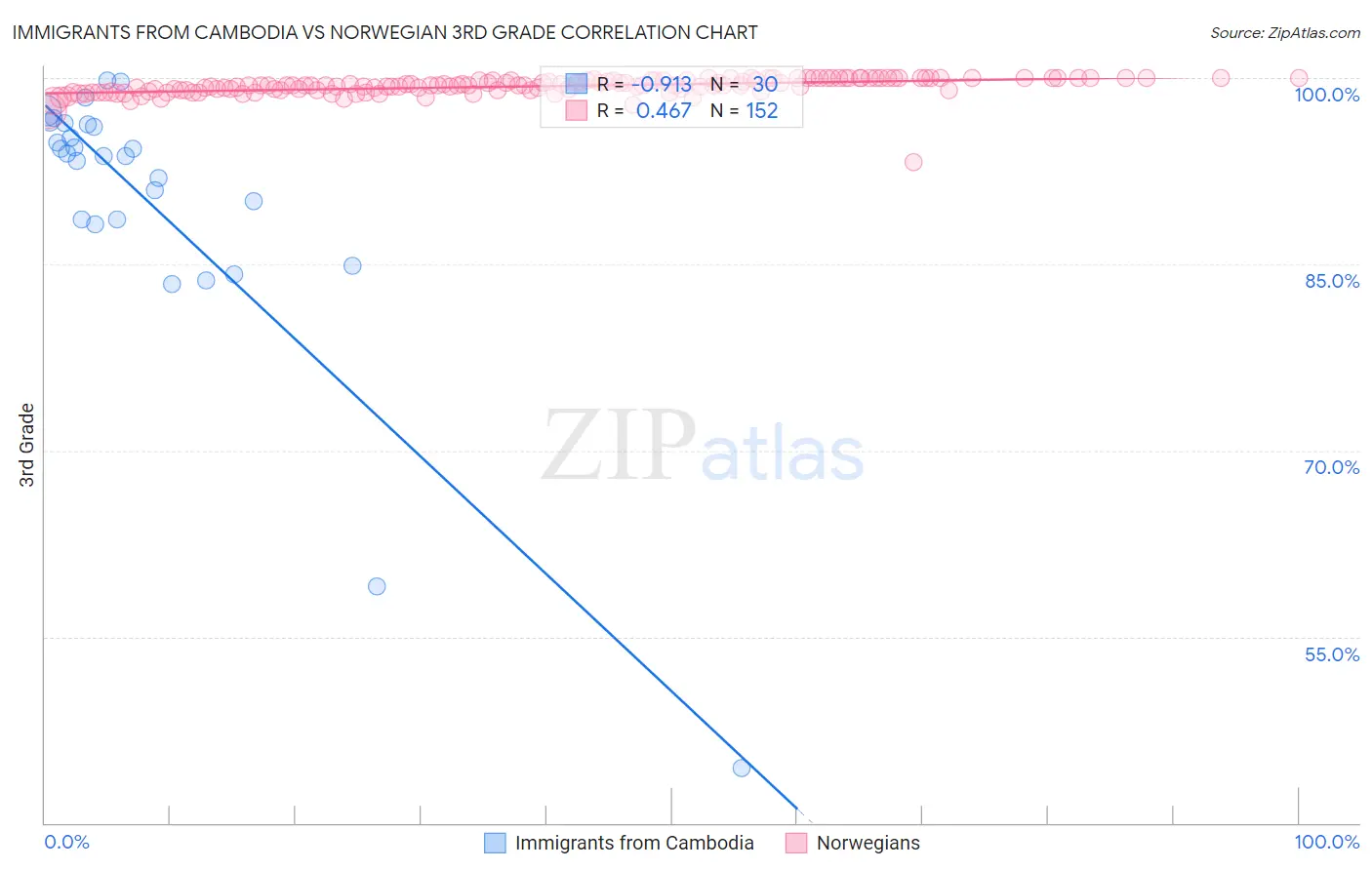 Immigrants from Cambodia vs Norwegian 3rd Grade Correlation Chart