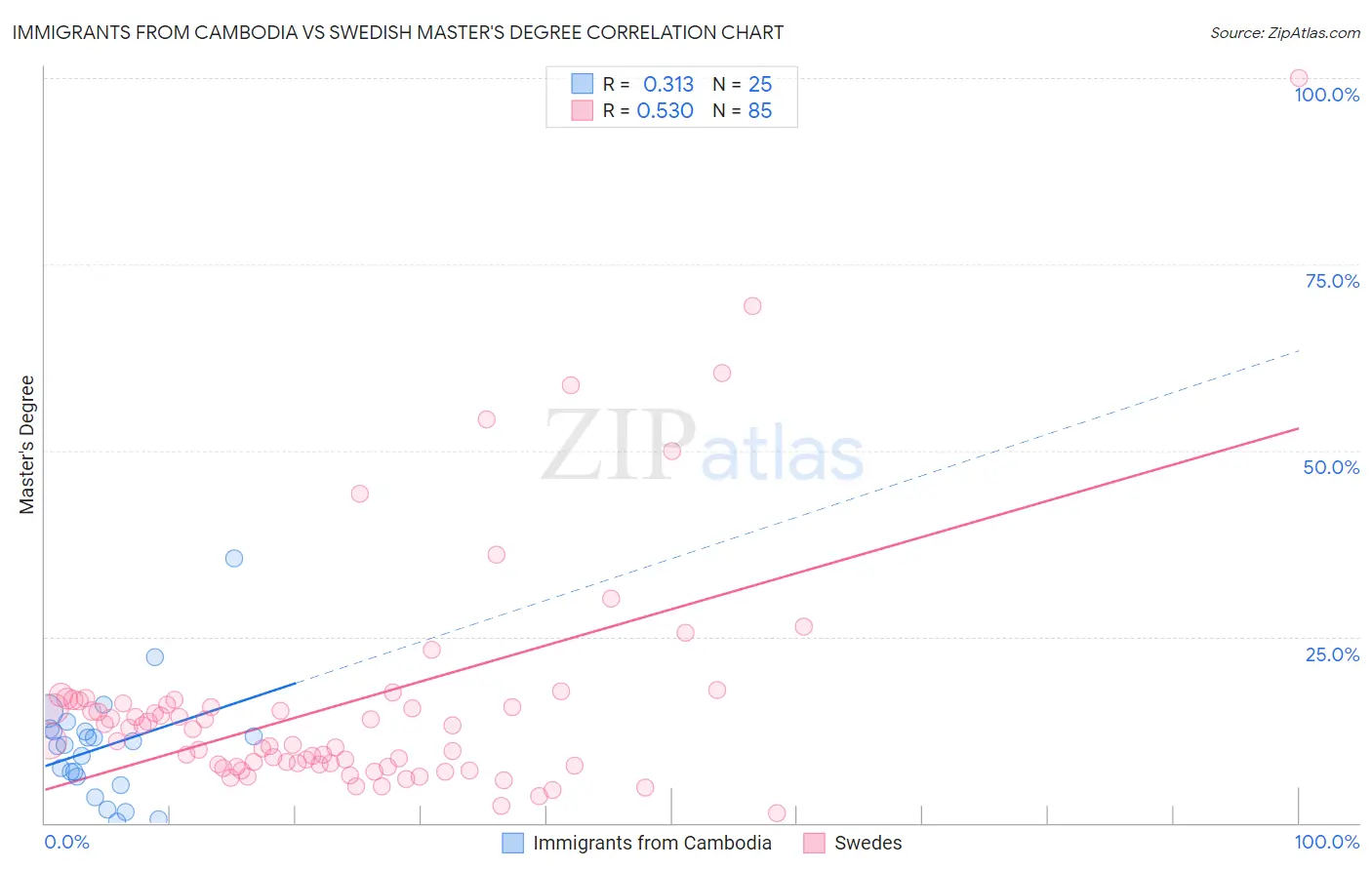 Immigrants from Cambodia vs Swedish Master's Degree Correlation Chart