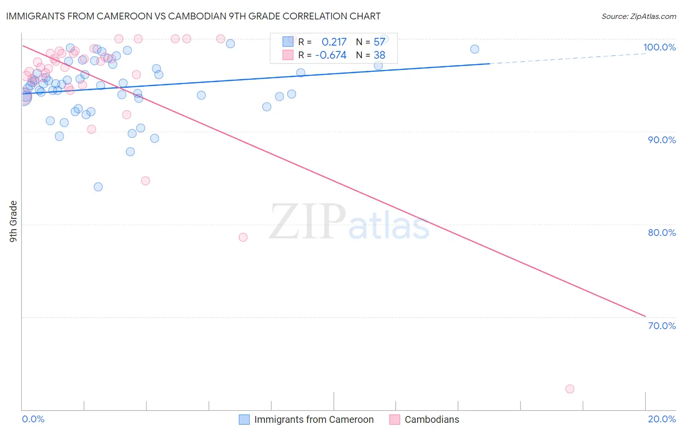 Immigrants from Cameroon vs Cambodian 9th Grade Correlation Chart