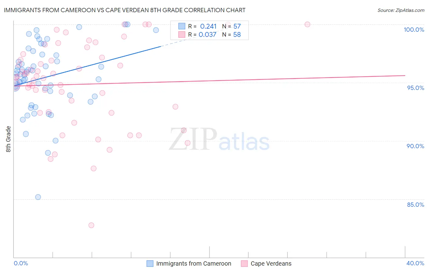 Immigrants from Cameroon vs Cape Verdean 8th Grade Correlation Chart