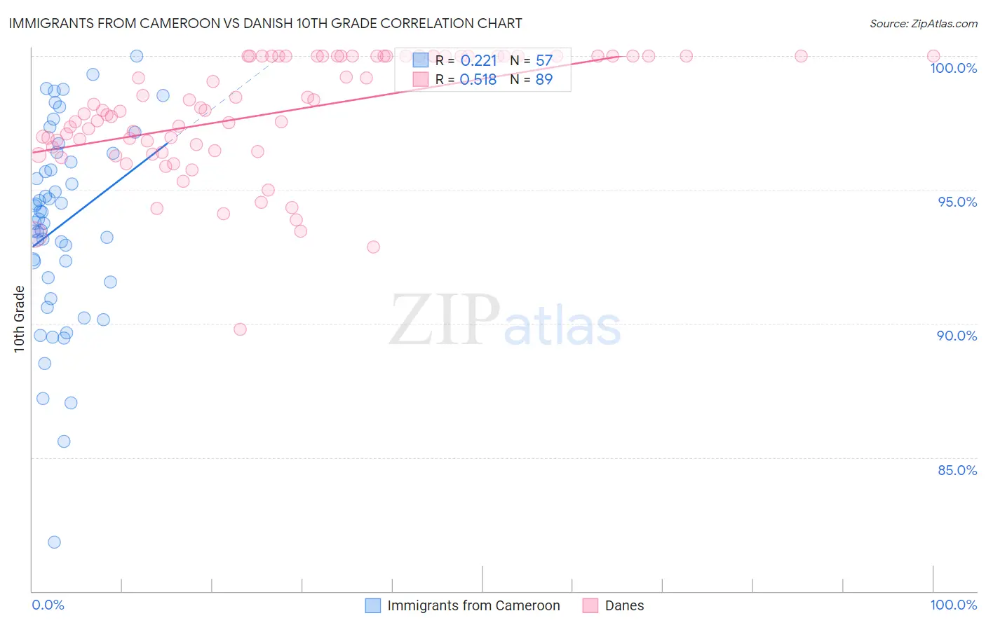 Immigrants from Cameroon vs Danish 10th Grade Correlation Chart
