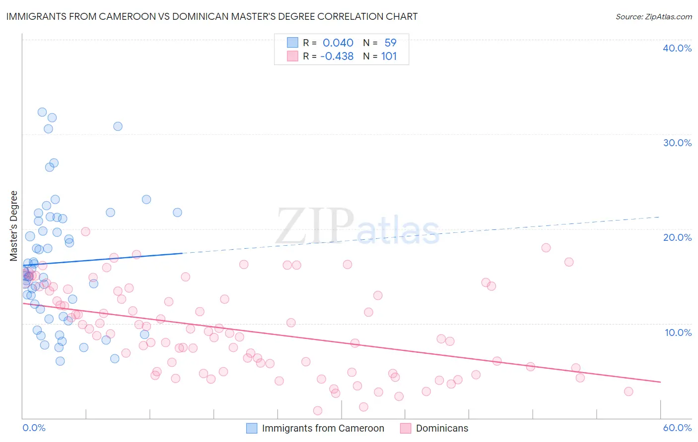 Immigrants from Cameroon vs Dominican Master's Degree Correlation Chart