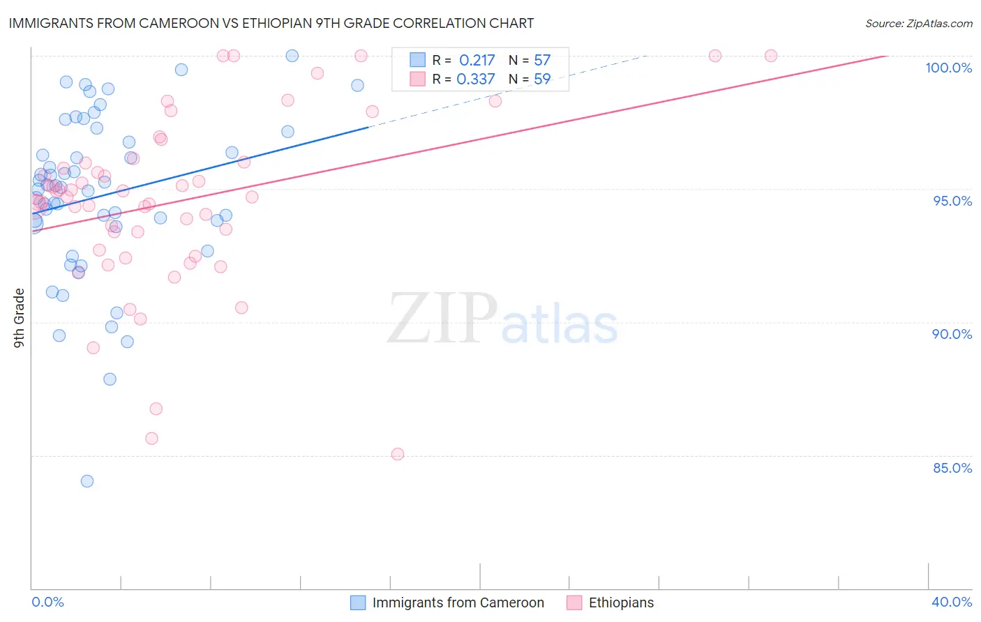 Immigrants from Cameroon vs Ethiopian 9th Grade Correlation Chart