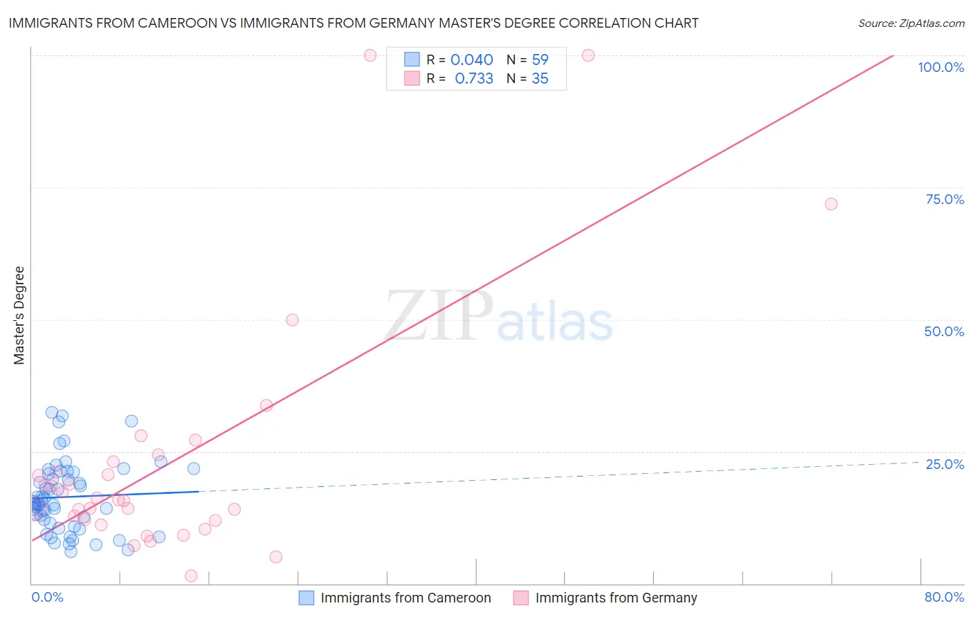 Immigrants from Cameroon vs Immigrants from Germany Master's Degree Correlation Chart