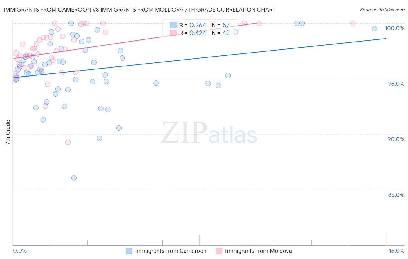 Immigrants from Cameroon vs Immigrants from Moldova 7th Grade Correlation Chart