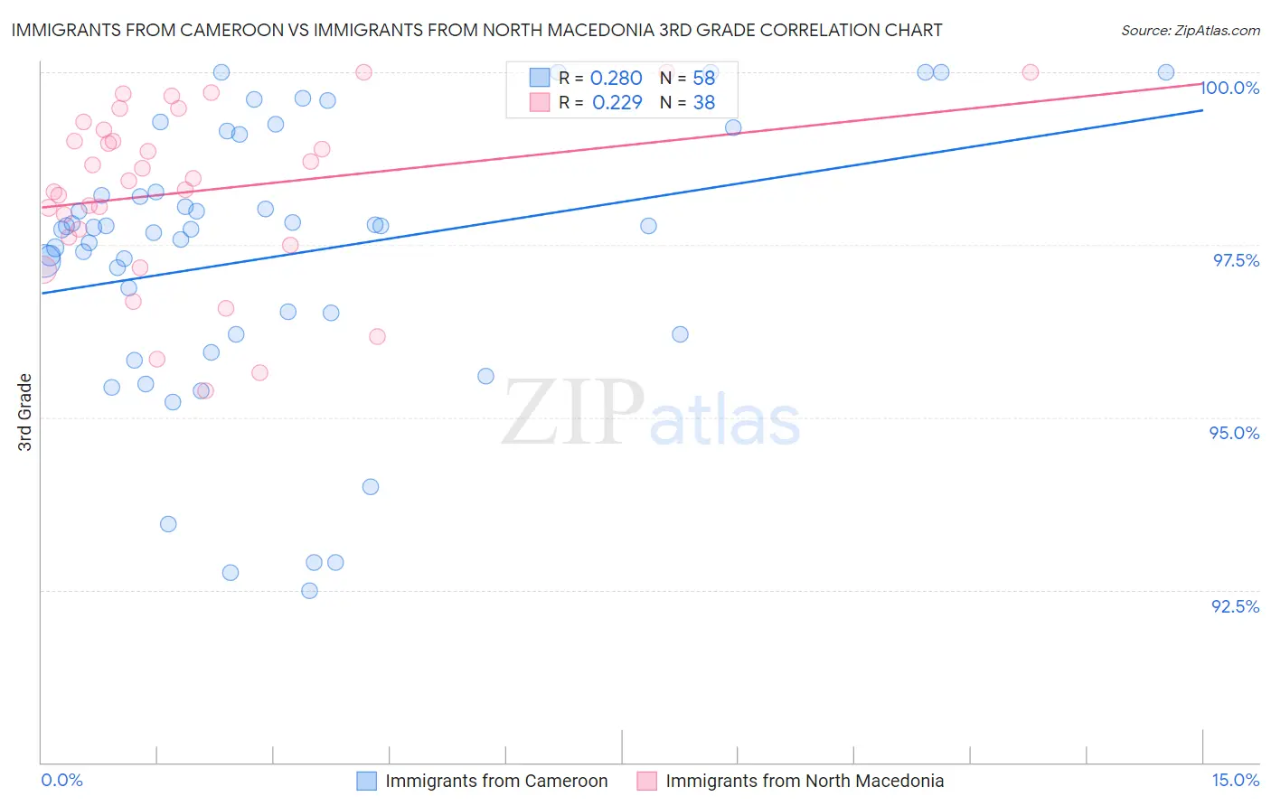 Immigrants from Cameroon vs Immigrants from North Macedonia 3rd Grade Correlation Chart