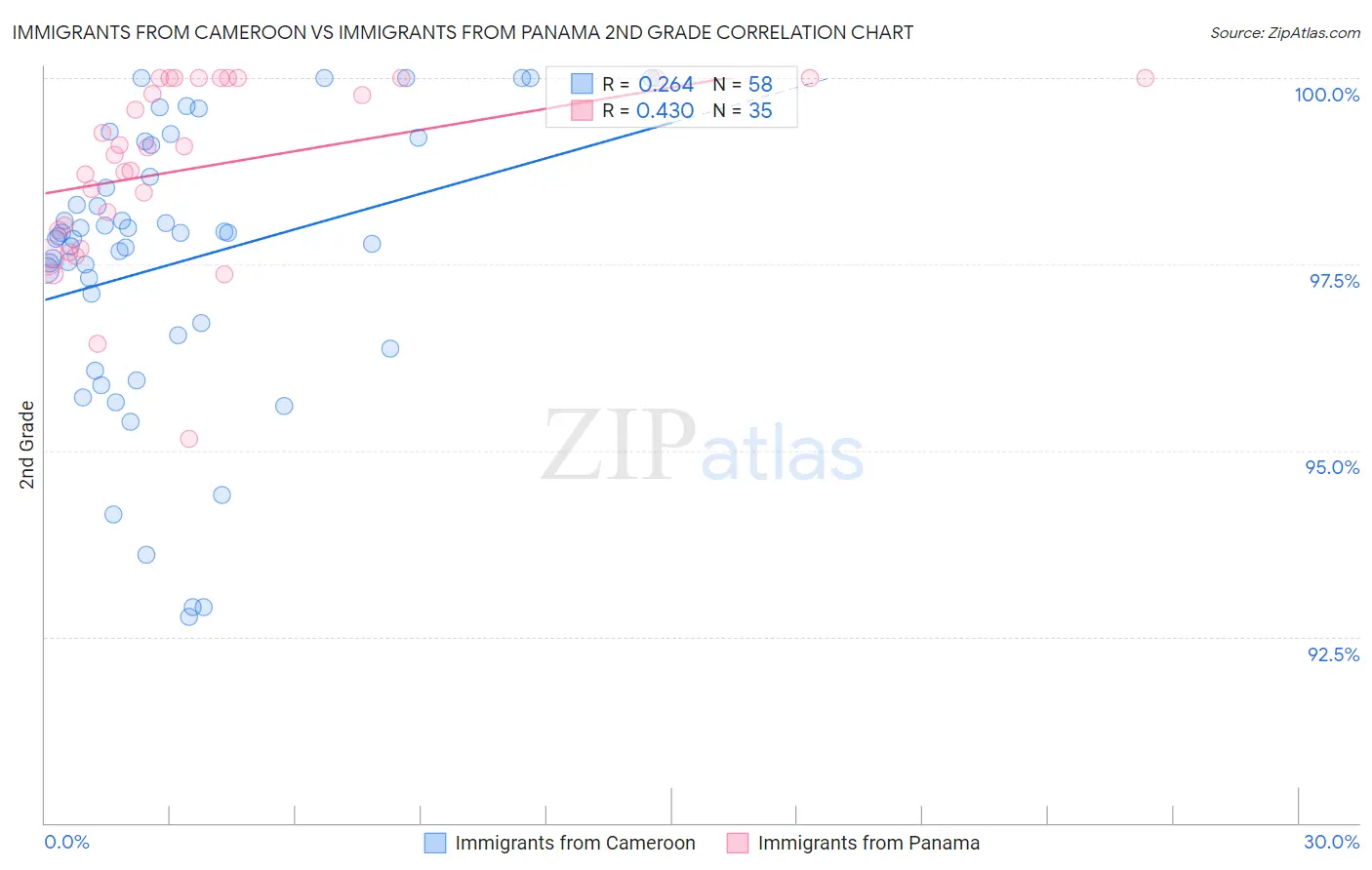 Immigrants from Cameroon vs Immigrants from Panama 2nd Grade Correlation Chart
