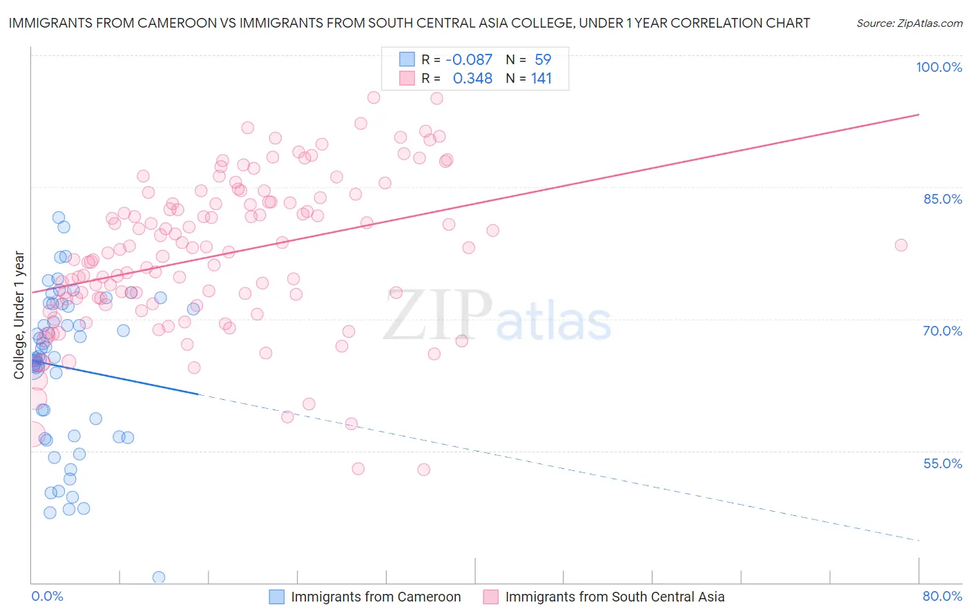 Immigrants from Cameroon vs Immigrants from South Central Asia College, Under 1 year Correlation Chart