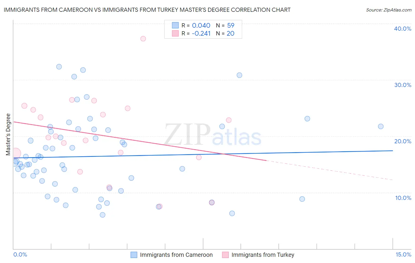 Immigrants from Cameroon vs Immigrants from Turkey Master's Degree Correlation Chart