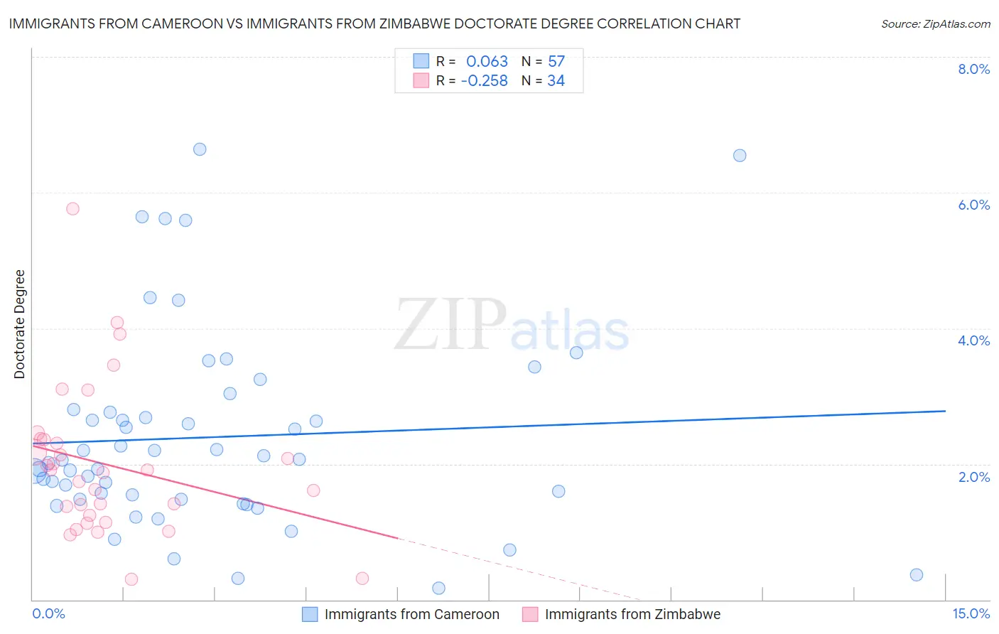 Immigrants from Cameroon vs Immigrants from Zimbabwe Doctorate Degree Correlation Chart