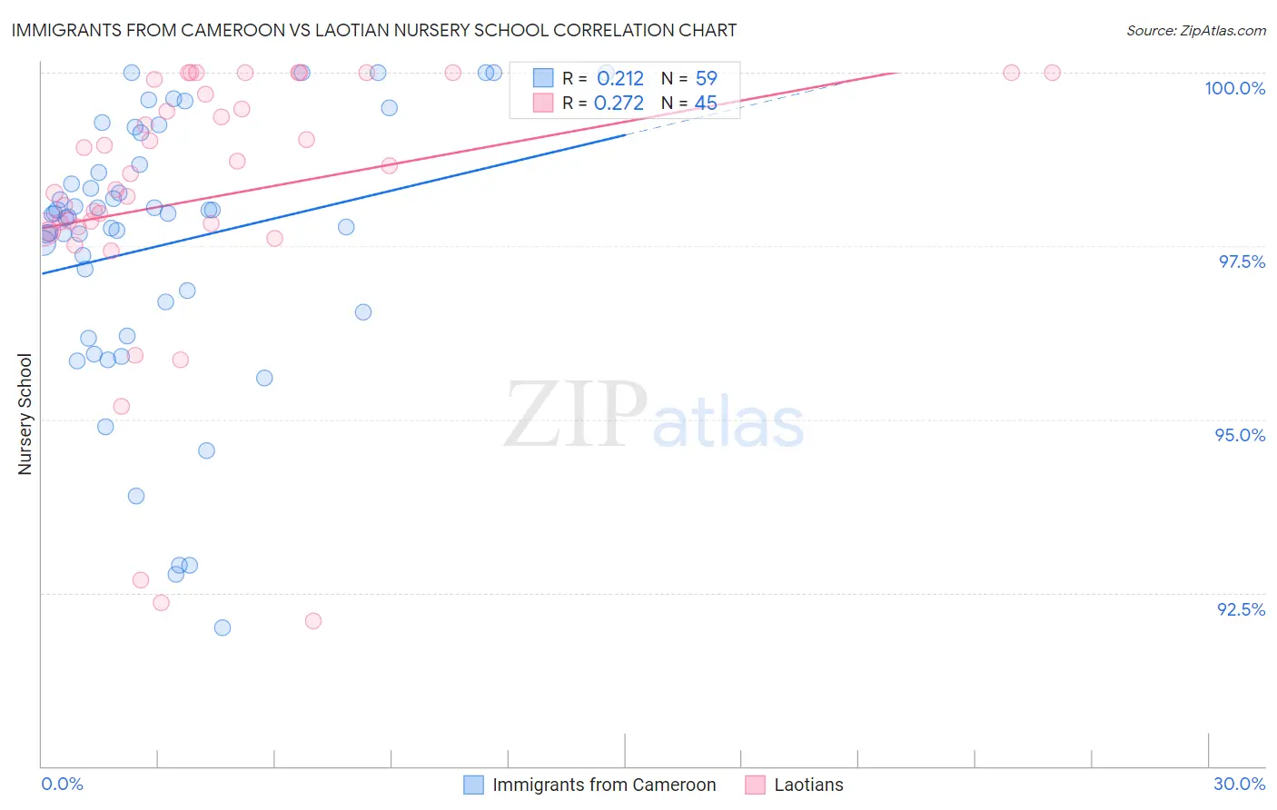 Immigrants from Cameroon vs Laotian Nursery School Correlation Chart