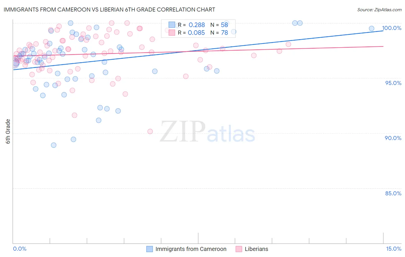 Immigrants from Cameroon vs Liberian 6th Grade Correlation Chart