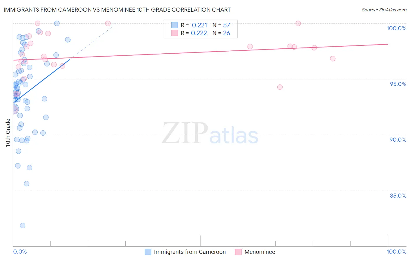 Immigrants from Cameroon vs Menominee 10th Grade Correlation Chart