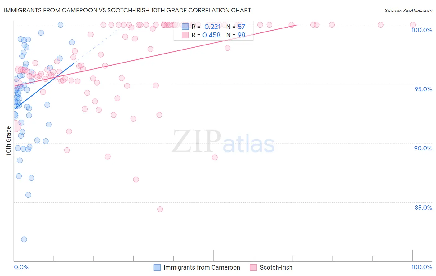 Immigrants from Cameroon vs Scotch-Irish 10th Grade Correlation Chart