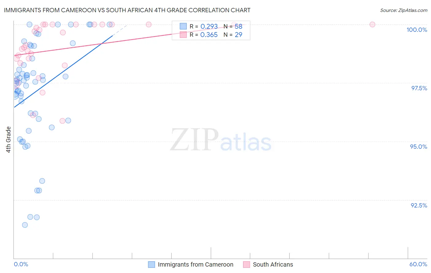 Immigrants from Cameroon vs South African 4th Grade Correlation Chart
