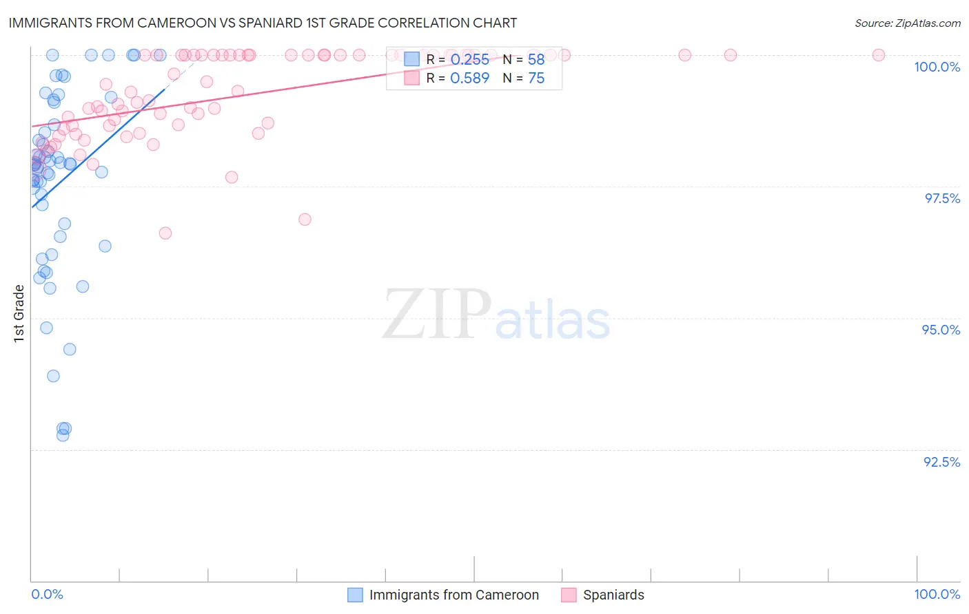 Immigrants from Cameroon vs Spaniard 1st Grade Correlation Chart