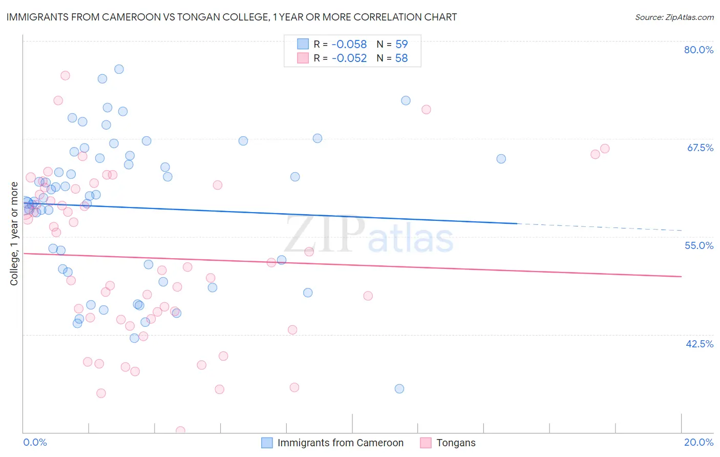 Immigrants from Cameroon vs Tongan College, 1 year or more Correlation Chart