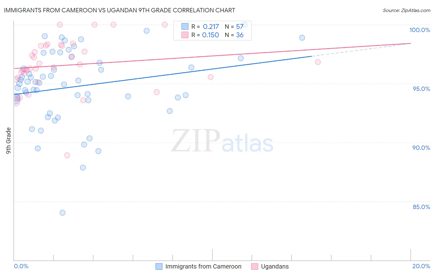 Immigrants from Cameroon vs Ugandan 9th Grade Correlation Chart