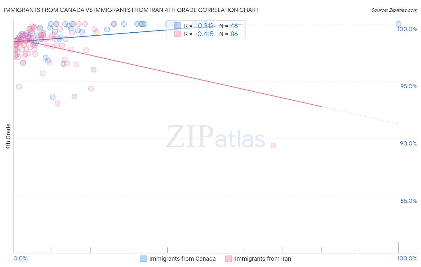 Immigrants from Canada vs Immigrants from Iran 4th Grade Correlation Chart